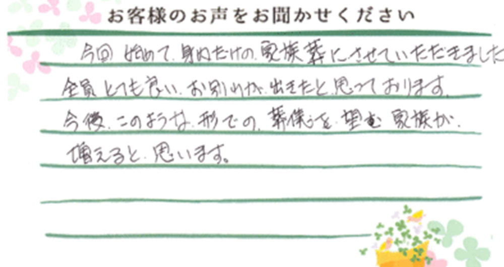 今回始めて、身内だけの家族葬にさせていただきました。